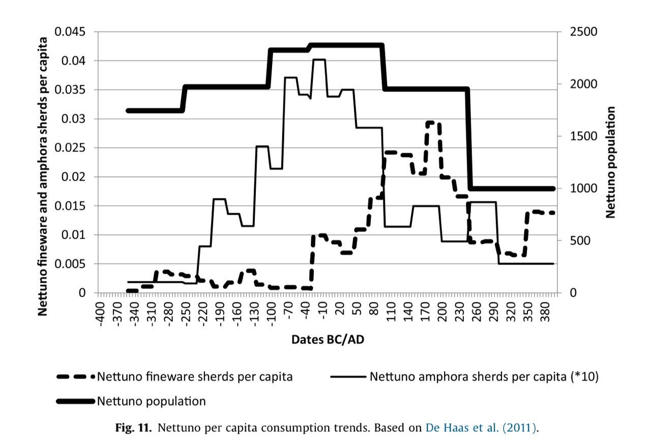 Even with pottery shards, archeological data from Nettuno in Italy is congruent with a pattern of lower populations—and less economic activity—after the pandemics.