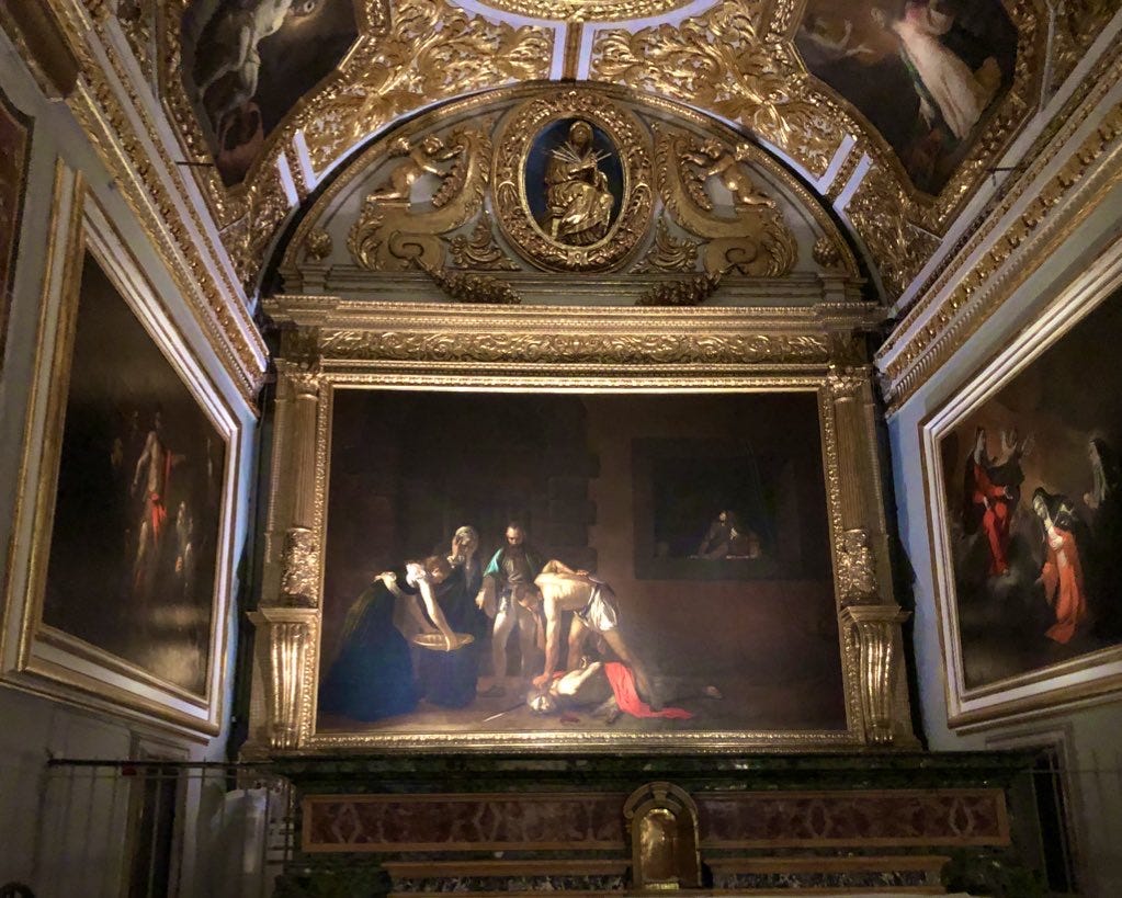 One of the things it’s most famous for is Caravaggio’s Execution of John the Baptist (below). Not only because the information the Cathedral provides doesn’t hide the fact that Caravaggio was, ahem, a rather complex character (he was on the run for murder when he painted this), but because of the sheer immensity of the man’s talent.