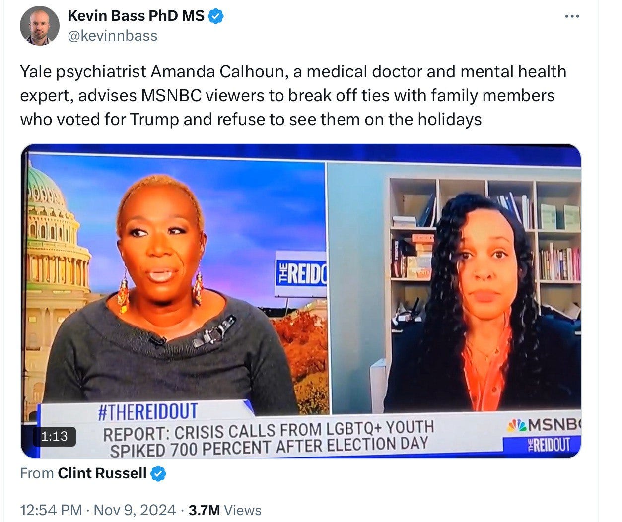 The (now sacked) FEMA supervisor who directed staff not to help Trump voters in the aftermath of a destructive hurricane displays exactly the same mentality. This is also how the hormonal and surgical mutilation and sterilisation of minors gets passed off as “care” and “compassion”.