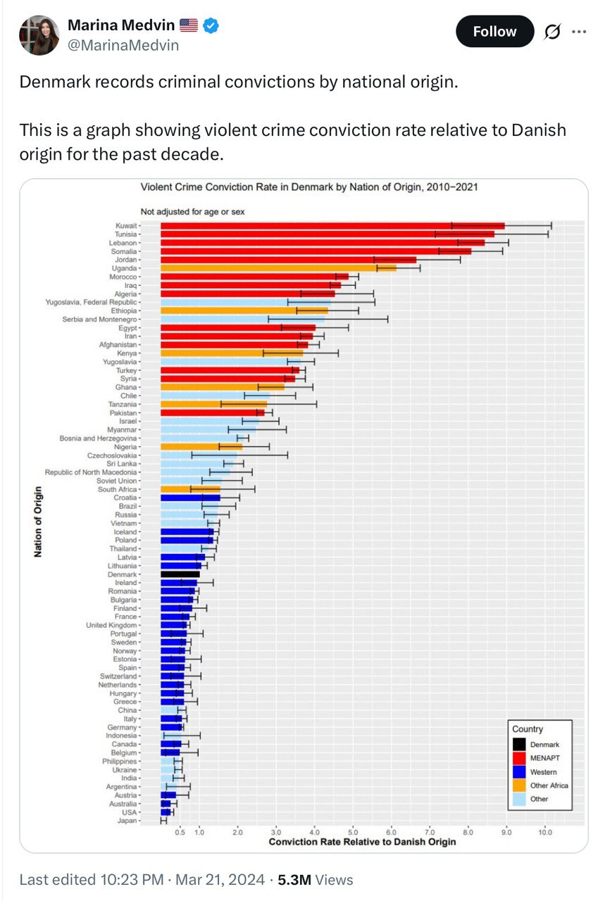 Yes, institutions create incentives, but only if their rules are enforced. The demands required for well-functioning US (or Swedish or …) institutions were not enforced. Instead, the DEI-mentality—including the sacralisation of “people of colour”—married to political patronage, meant that (in both Minnesota and Sweden) Somali cultural patterns continued to operate and to corrode local institutions.