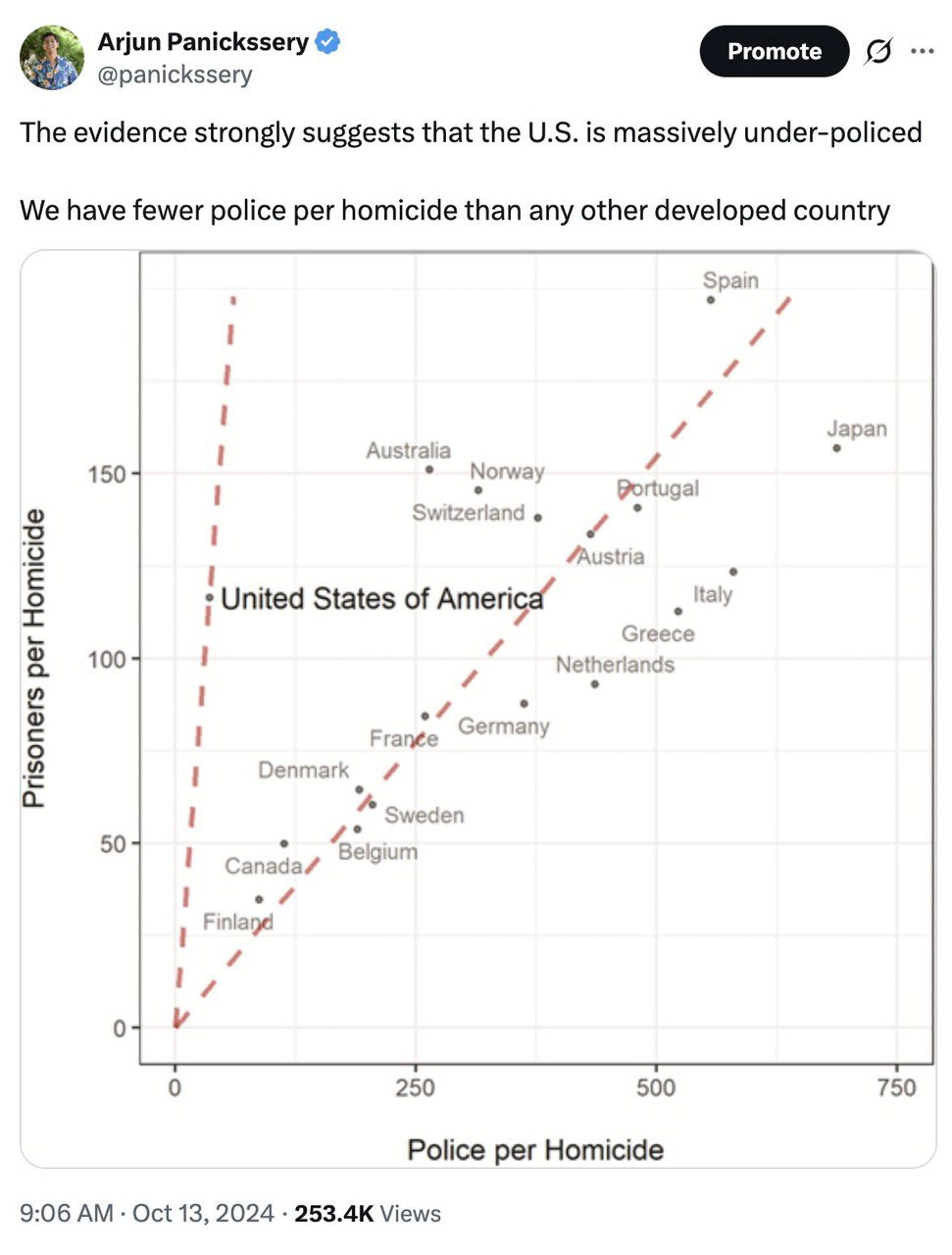 This is indeed what we observe but—thanks to the blank slate delusions having normative dominance amongst Western elites thanks to our toxically incompetent universities—neither voters nor those making public policy are supposed to notice this. It is one of the reasons why, for example, the US is dramatically under-policed.