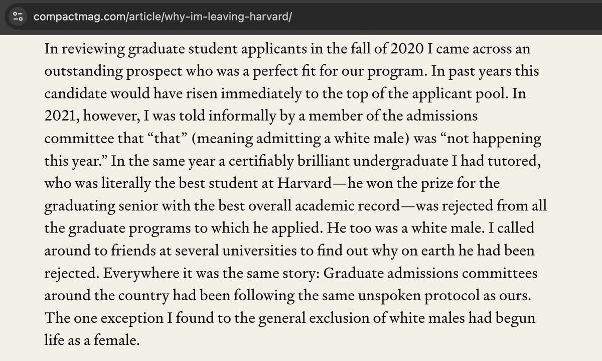 Even in terms of maximising gains-from-trade transactions, immigration can increase transaction frictions. Cultural diversity makes social coordination harder and increases points of potential social friction, including competition for positional goods. Particularly when matched with DEI, immigration can actively discourage hiring and training locals. Tech entrepreneur Marc Andreessen says the quiet part out loud: US corporate employers import Africans so they do not have to hire African-Americans.
