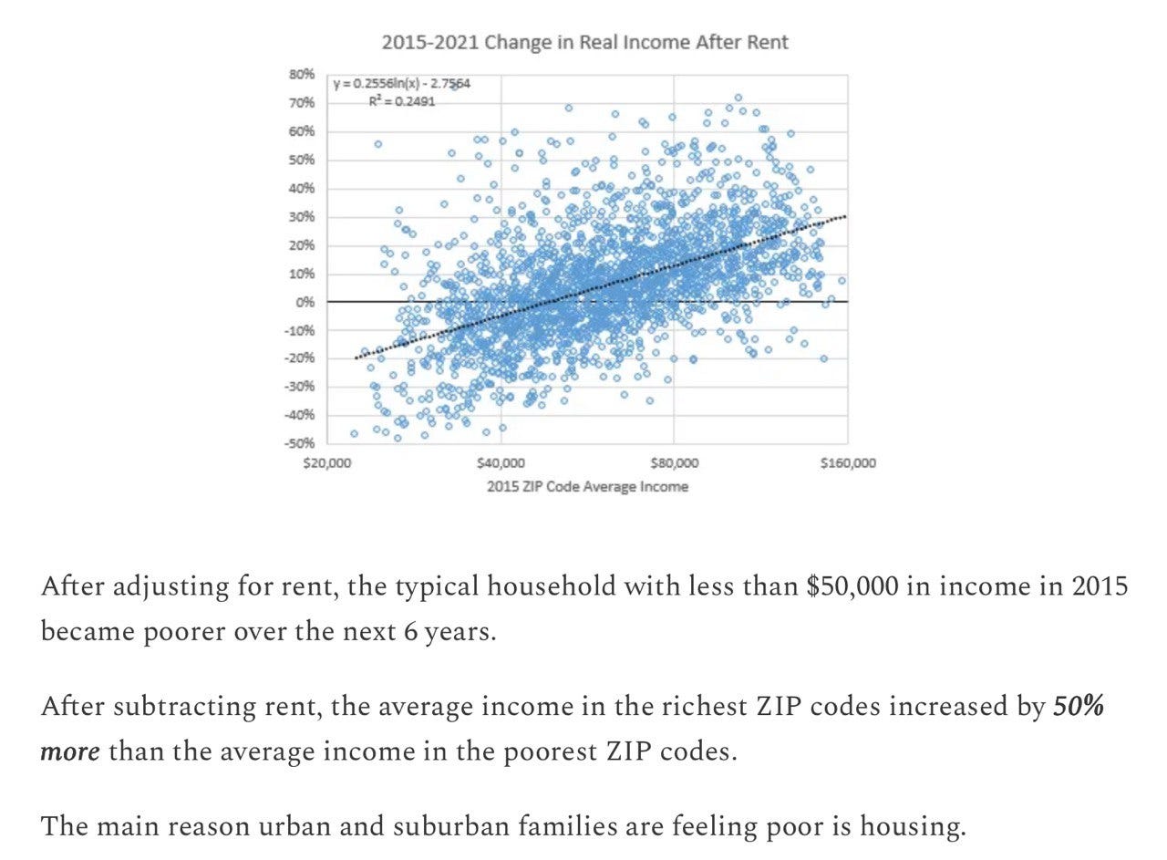 Having lots of non-voting housing market entrants encourages restrictive zoning laws, to increase the tax revenue from, and the value of, land. Driving up land values increases infrastructure costs and undermines the tax revenue benefit of providing infrastructure. Social fracturing makes it harder to get things built. It manifests as the common public policy habit of reducing supply (shielding incumbent producers) while increasing demand (by “helping” consumers).
